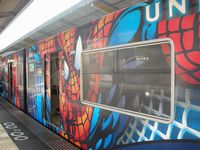 のっけからスパイダー仕様の電車に揺られて到着!