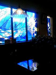 あ、でも、テーブルとかにもステンドグラスがうつりこんで、とても癒し系のお店です☆